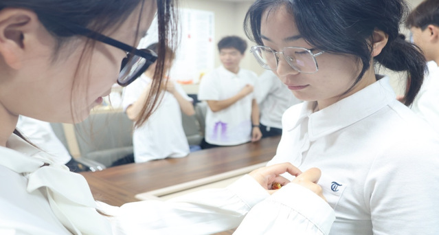 仪式在庄严的《中华人民共和国国歌》声中拉开序幕。首先团委副书记郑怡静宣读了新团员名单,并和老团员代表一起为新团员佩戴团徽、颁发团员证。闪亮的团徽别在胸前,不仅是一份荣誉,更是一份沉甸甸的责任与担当。