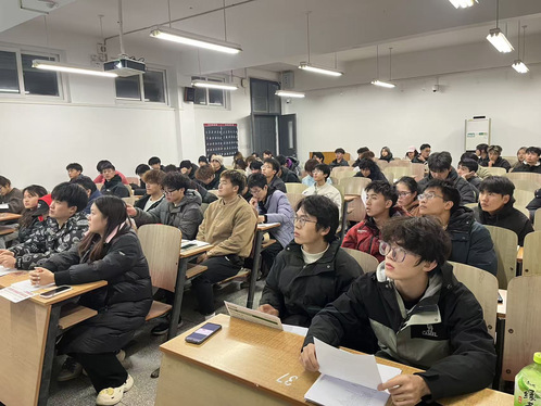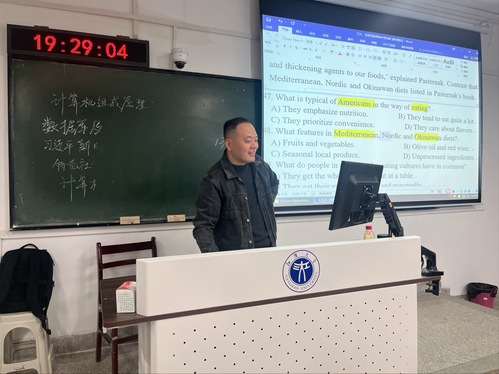 更让学生印象深刻的是,牛利平老师全程保持幽默风趣的讲话风格,用生动的语言化解英语学习的枯燥感,原本略显严肃的备考讲座变得轻松易懂。现场六十余名学生始终专注听讲,不时提笔记录解题要点,遇到疑问及时与老师互动,学习氛围浓厚。“以前做阅读总觉得时间不够用,今天学会了‘关键词定位法’,终于知道该怎么高效读题了!”讲座结束后,学生们纷纷表示,此次讲座不仅掌握了实用的四级阅读答题技巧,更增强了备考信心,为后续的四级考试冲刺打下了坚实基础。