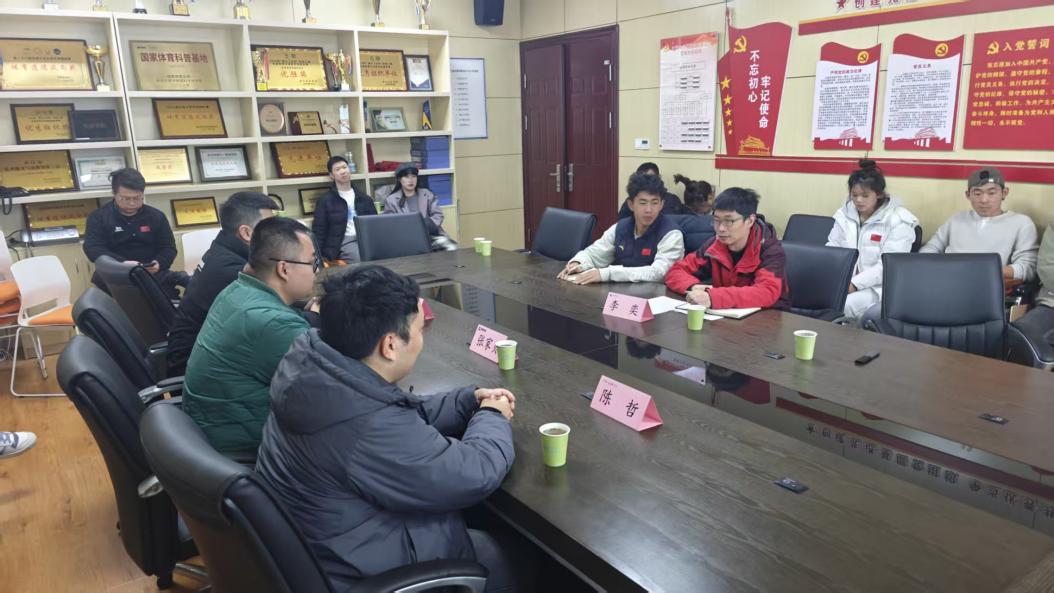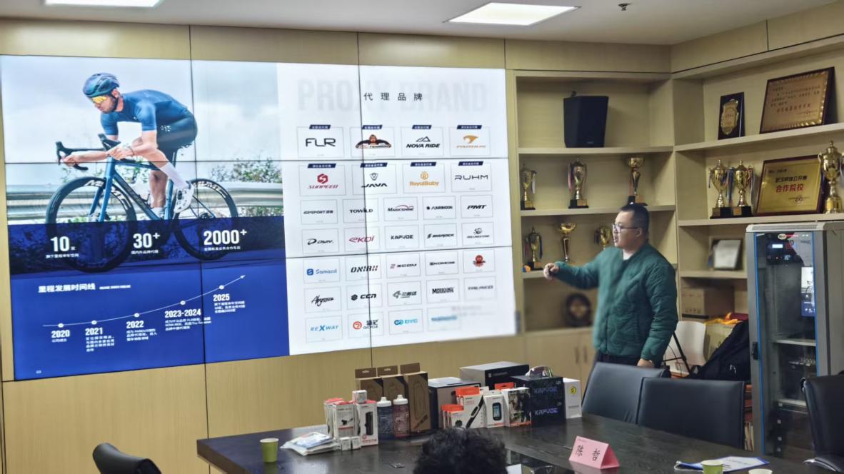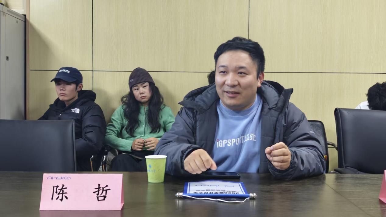 2025年十二月底,车队战略合作伙伴里程体育总经理张家贝、阿西卡气动水壶总经理陈哲及IGPSPORT迹驰销售经理陈黎明一行到访江汉大学。他们不仅带来了2026赛季的赞助物资,还与运动训练专业(自行车方向)的学生围绕自行车行业发展现状及未来走向展开深度交流。