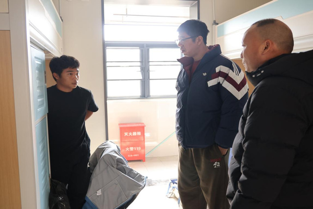 学院党委书记张琮玫老师、院长蒋国勤老师、党委副书记商文华老师带领辅导员及学生干部深入宿舍,与学子亲切交流假期生活以及新学期准备情况,与学业需要帮扶的同学进行深入交流,交心谈心。同时,细致查看宿舍卫生状况与安全隐患,重点排查大功率电器、私拉乱接等问题,要求做好生活用品与训练装备收纳,杜绝卫生死角,对发现的问题逐一登记,督促整改;同时核对学生到寝情况,严格落实归寝制度,筑牢宿舍安全防线。院领导老师不仅为学子们营造整洁安全的居住环境,更传递了学院对每一位同学的深切关怀,让青春在安心、舒心的氛围中肆意生长。