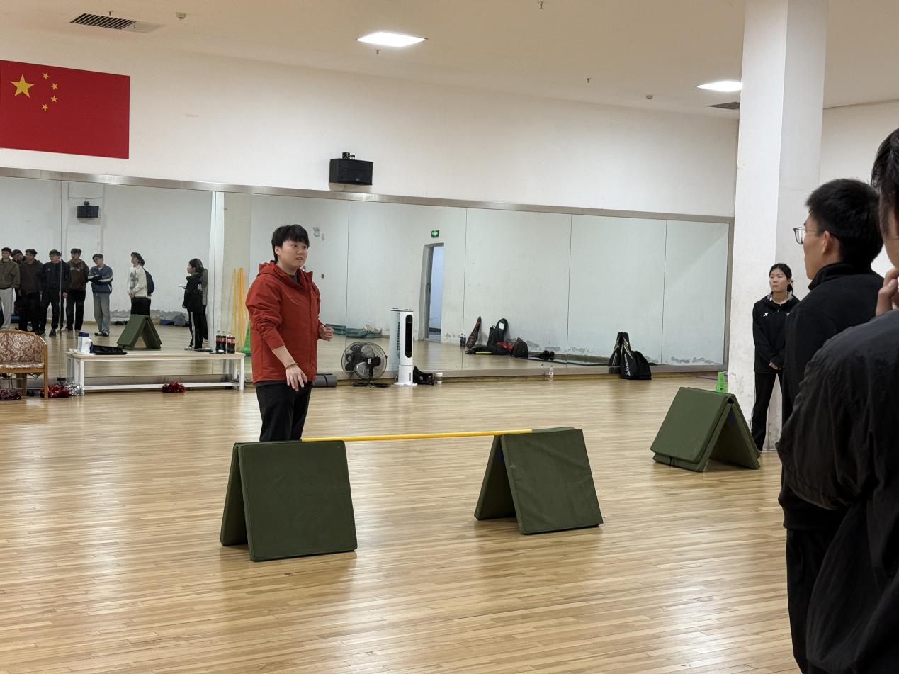 课堂上,刘馨老师以启发式提问切入,引导同学们思考“面对跳远、跳高这类教材,应该如何进行教学设计”。在学生积极发言后,刘老师逐一进行点评,充分肯定同学们的创新意识,并在此基础上展开系统的实践指导。