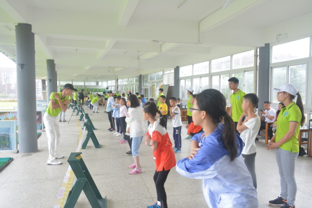 虽然周日天公不作美,但是暴雨和大风依然没影响学生家长和小朋友对学习高尔夫球运动的热情,教练们分小组教学,互相介绍认识、热身小游戏、挥杆教学都井然有序的进行。