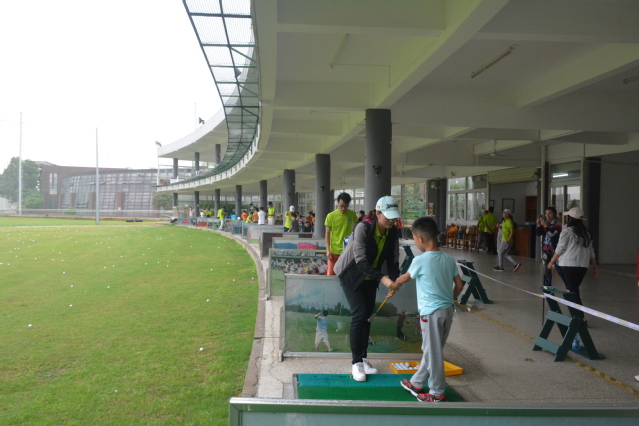 虽然周日天公不作美,但是暴雨和大风依然没影响学生家长和小朋友对学习高尔夫球运动的热情,教练们分小组教学,互相介绍认识、热身小游戏、挥杆教学都井然有序的进行。